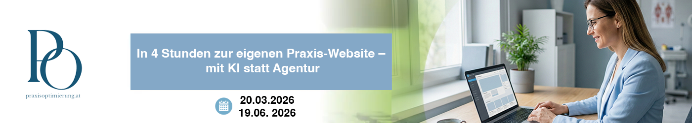 Die Teilnehmerzahl ist begrenzt – sichern Sie sich rechtzeitig Ihren Platz und lernen Sie, wie Sie Ihre Praxis-Website schnell, professionell und unabhängig mit KI umsetzen können.